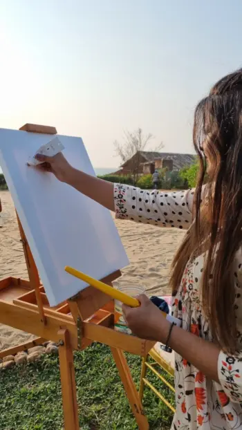 Besides creating beautiful live wedding paintings, Hannah also provides art classes for a preparation course for bachelors in fine arts and aptitude test. If you're interested in taking your artistic skills to the next level, consider signing up for one of her courses. Get in touch with Hannah to learn more about her services, pricing, and how she can help you capture your wedding memories or develop your art skills in Goa.
