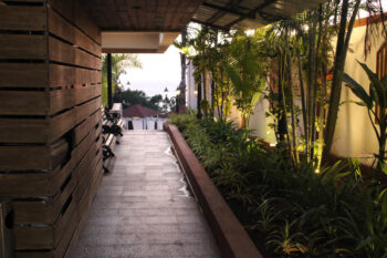 As you step foot into the resort, you are immediately greeted by a sense of serenity and opulence. The lush surroundings, adorned with swaying palm trees and vibrant tropical flora, form a picturesque backdrop. In every corner, the resort exudes a harmonious blend of modern elegance and traditional Goan charm, offering a truly immersive experience.